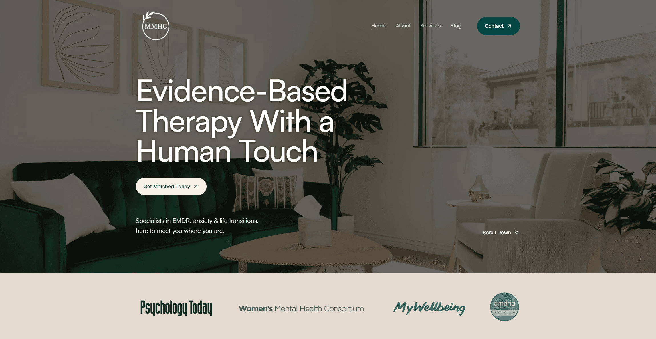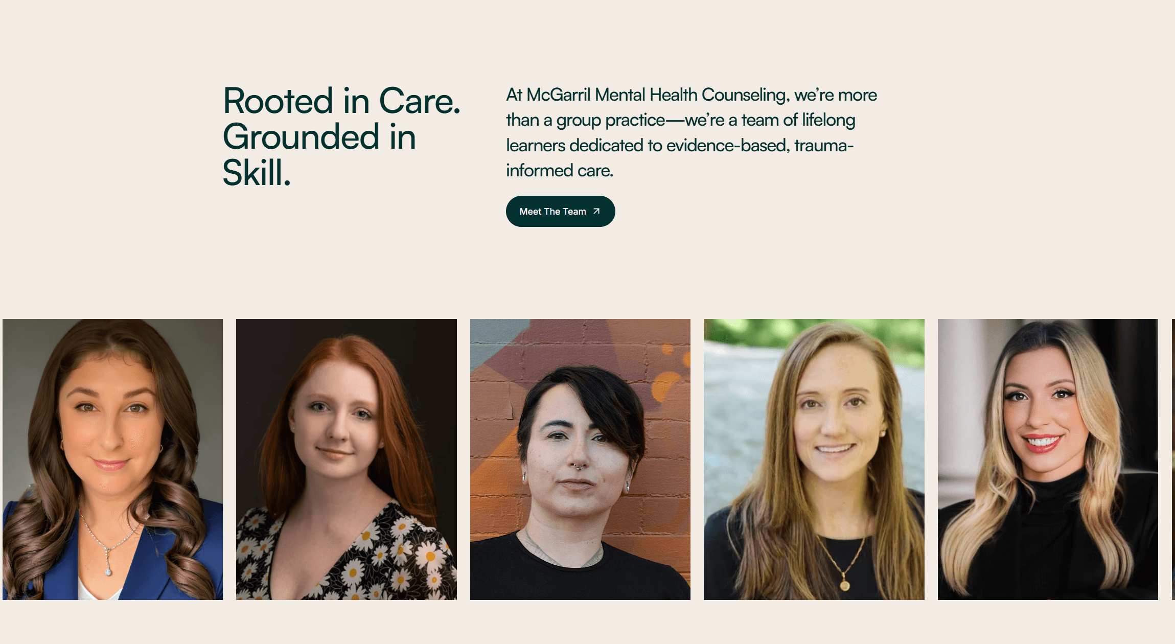Lindsay McGarril runs a growing group practice that had reached a turning point. She was bringing on new clinicians, generating strong referrals, and doing genuinely excellent clinical work, but the brand had not kept pace. The existing identity felt like it belonged to an earlier, smaller version of the practice. It was not helping with recruitment, it was not communicating the sophistication of the team, and it was not giving referral sources or prospective clients a clear sense of what made this practice different from any other group in the area.