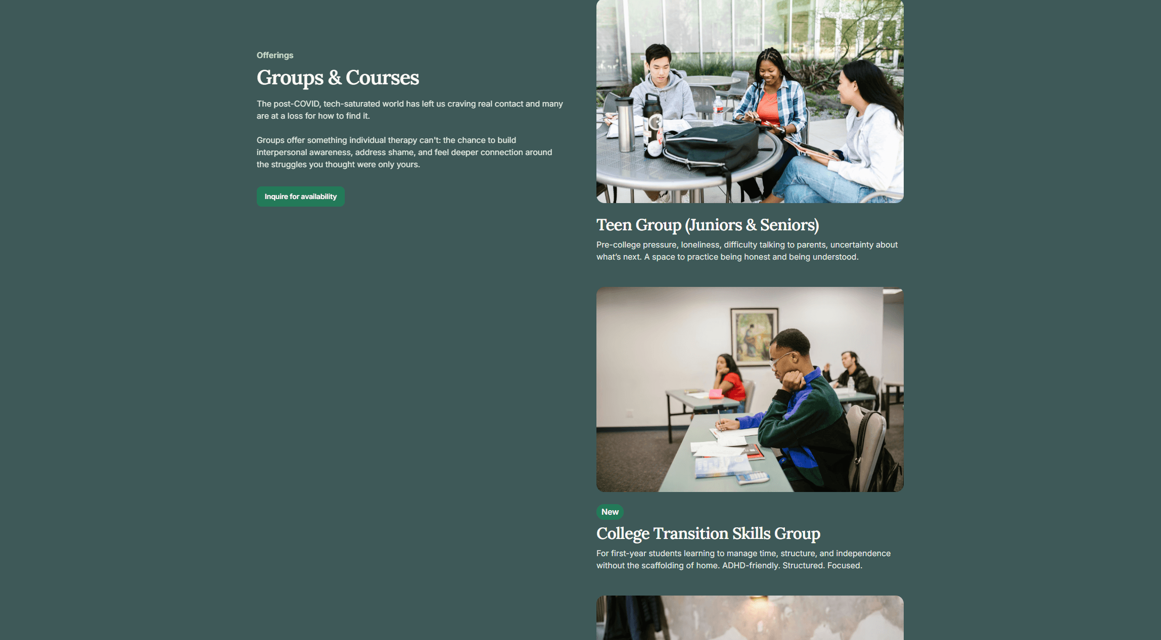 We built a brand strategy and site designed to unify the different dimensions of her work into a single platform that feels cohesive and credible. Rather than treating the practice, the teaching, and the educational content as separate threads, the site positions Michal as a clinician whose depth of knowledge naturally extends into training and thought leadership. The photography from her session with Donovan Mierlak brought a human dimension to the platform that text alone could never accomplish.