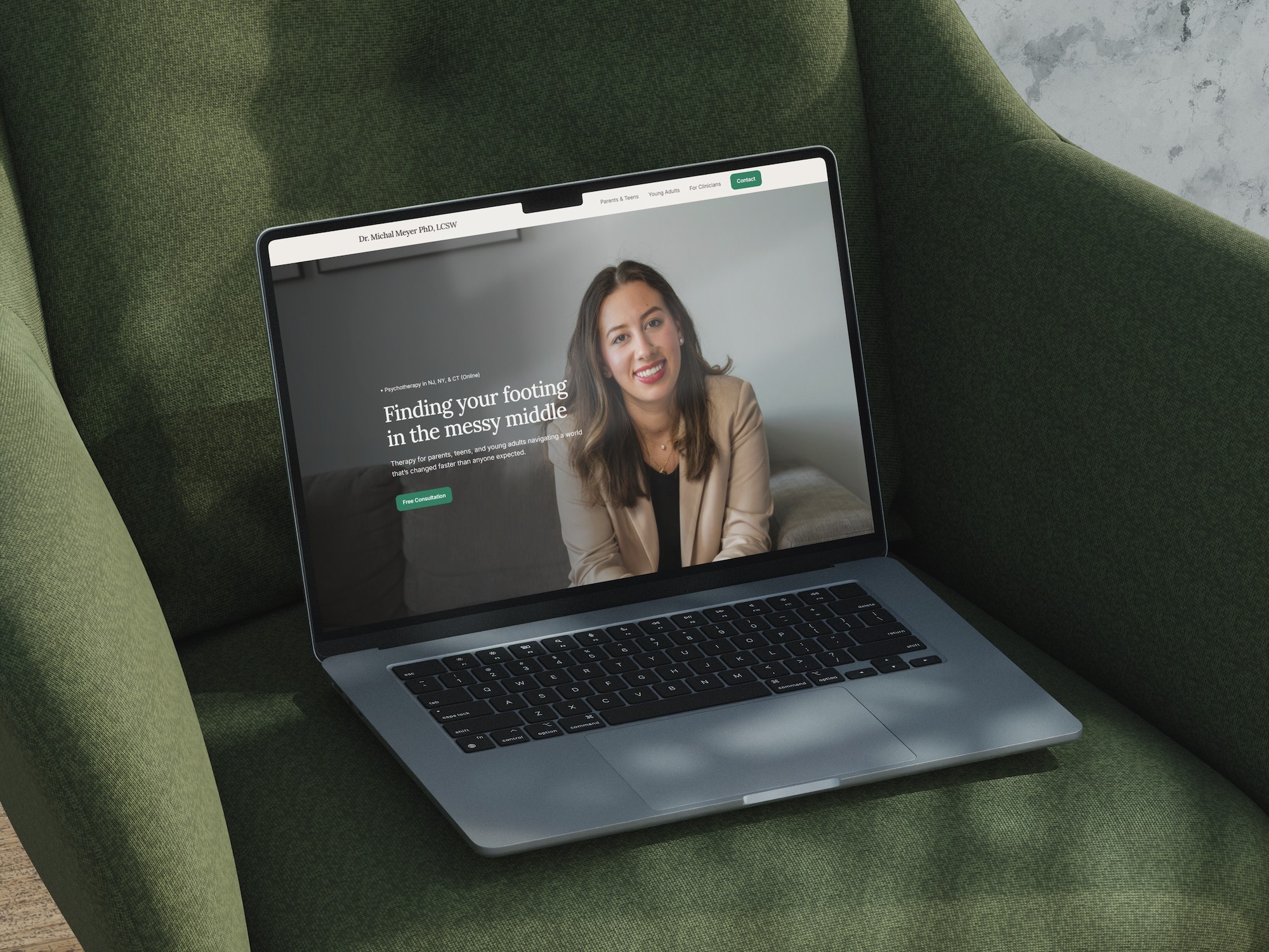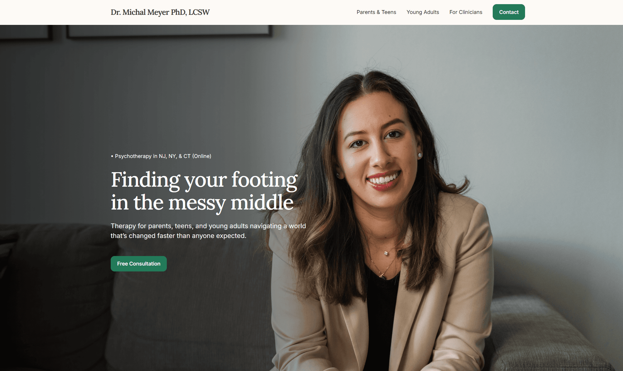 Michal Meyer is a therapist and educator whose expertise runs significantly deeper than her online presence ever communicated. She had built a strong clinical reputation and was actively teaching, supervising, and developing educational content, but the digital platform connecting all of that did not exist in any coherent form. The gap between what she was doing in the room and what anyone could find about her online meant that her authority was essentially invisible to anyone outside her immediate professional circle.